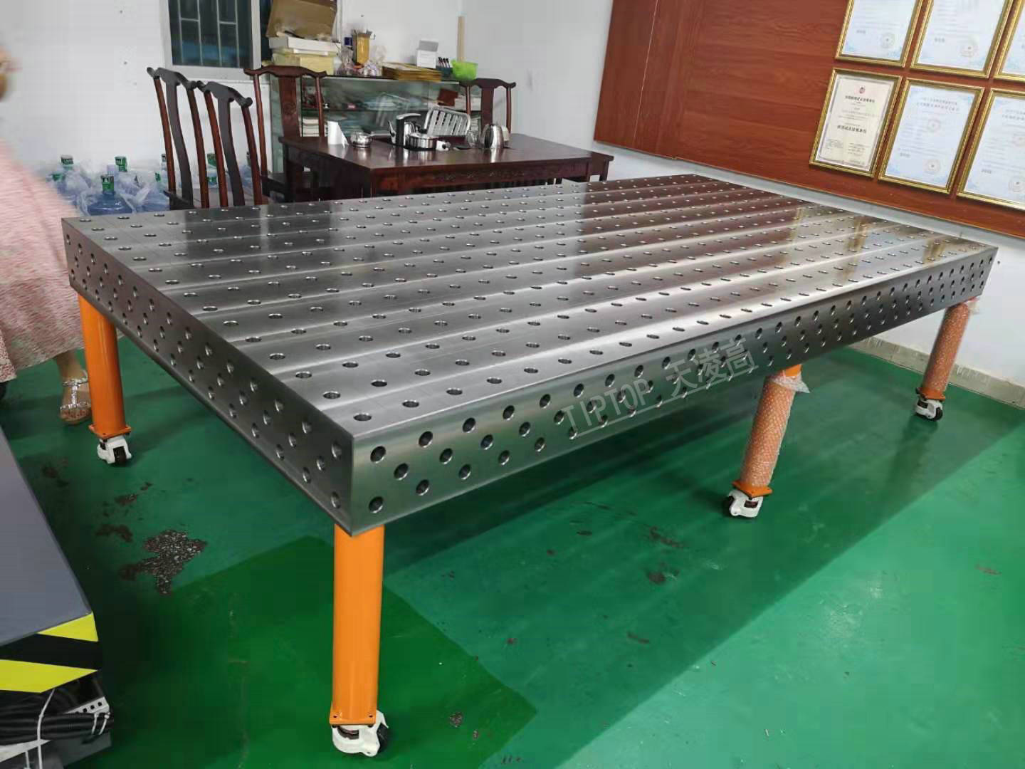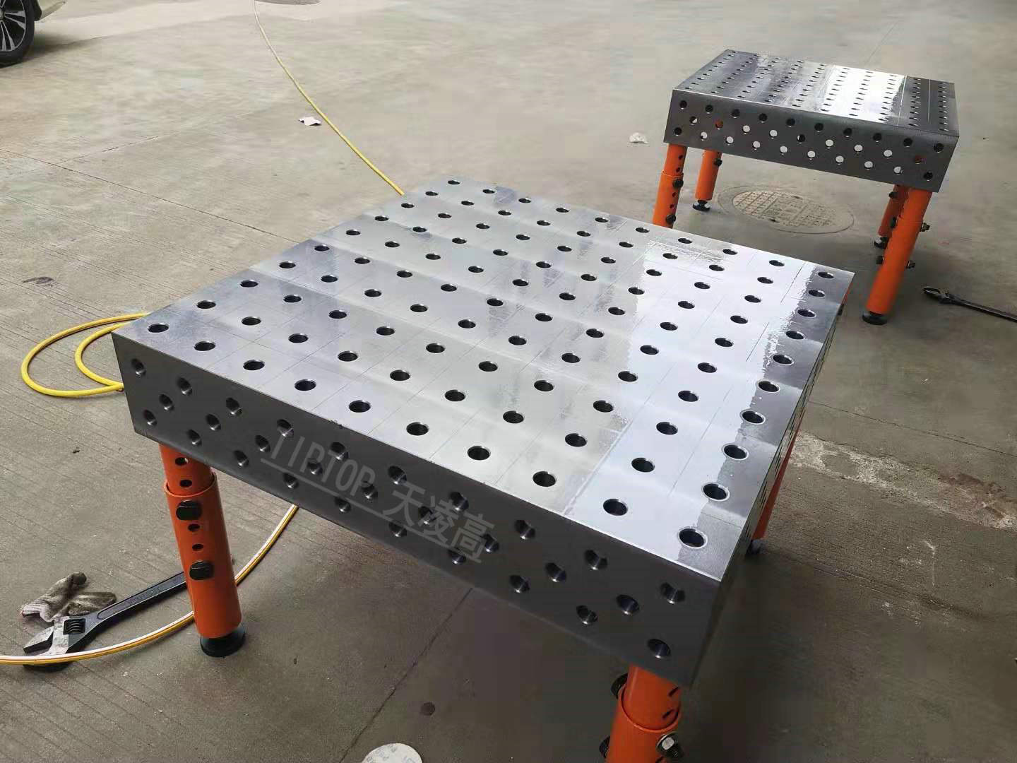 三維柔性焊接平臺特性:采用鑄件/鋼件制作,堅固耐用28系列孔與孔間距100mm,16系列孔與孔間距50mm底部加強筋保證穩定不變形。地面不平位置可調腳墊微調保證,不需要卷尺能通過刻線快速定位夾具五個面均可以模塊化延伸、拓展使用不同產品、不同規格均可以重復使用,平板表面與孔防銹潤滑油減小磨損可以根據實際使用情況合理選用平臺支撐方式。